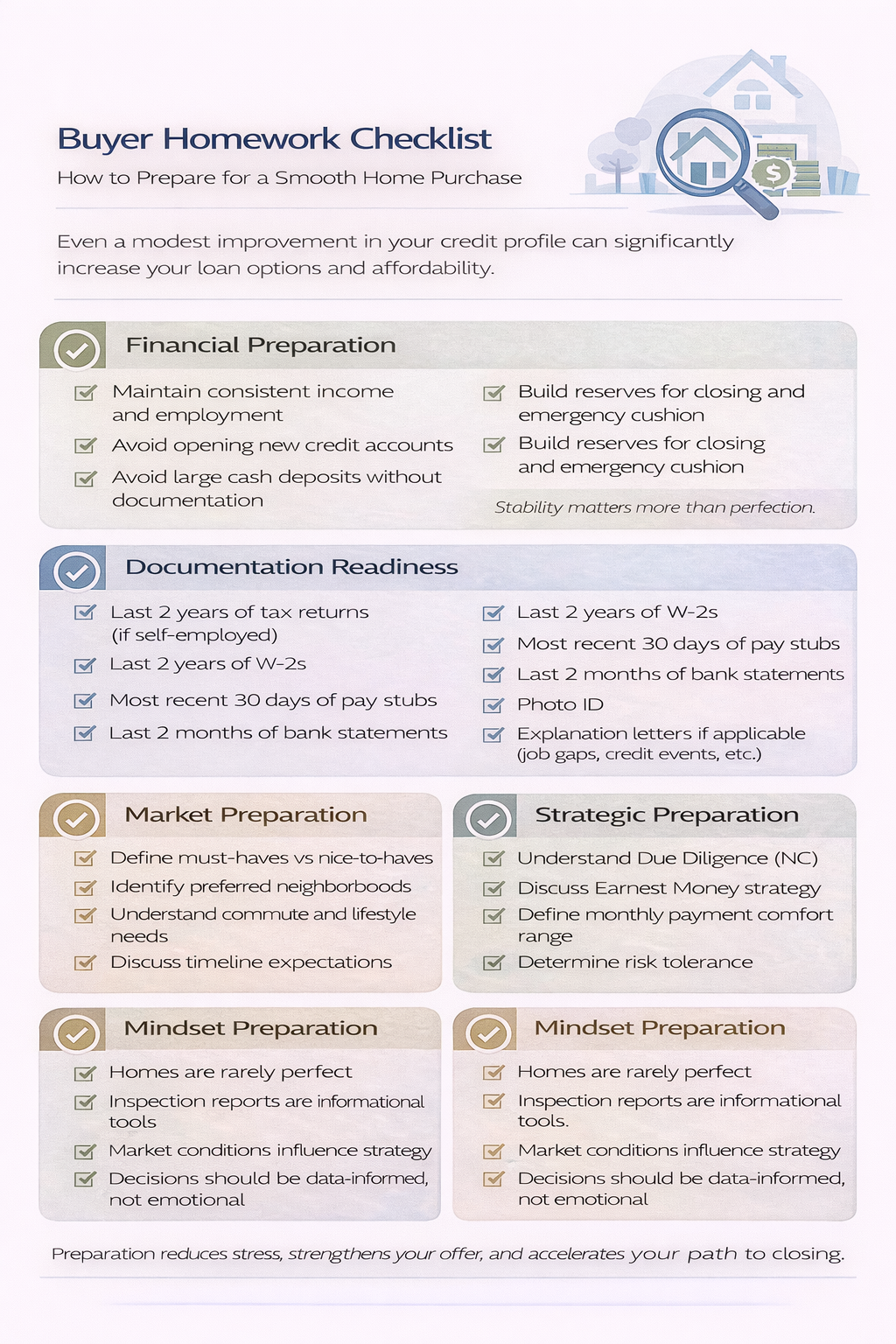 A step-by-step checklist covering financial, documentation, and market preparation—so you’re ready to act when the right home appears.