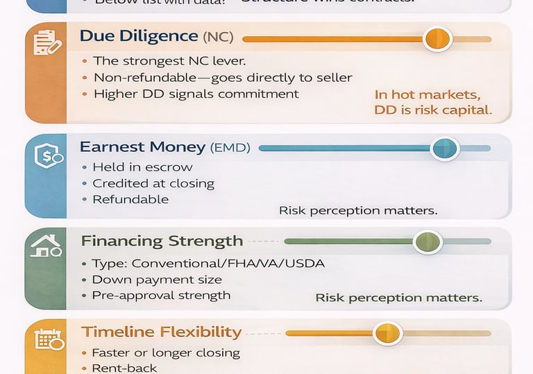 Learn the six key levers that strengthen an offer beyond price. Structure competitive terms while protecting your comfort level and financial exposure.